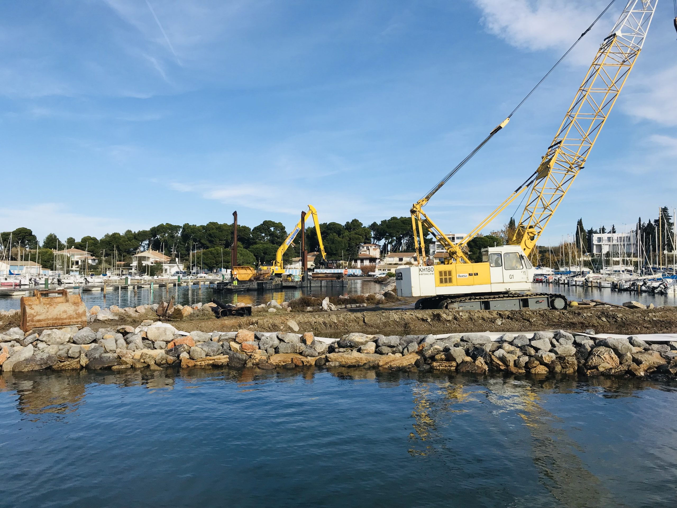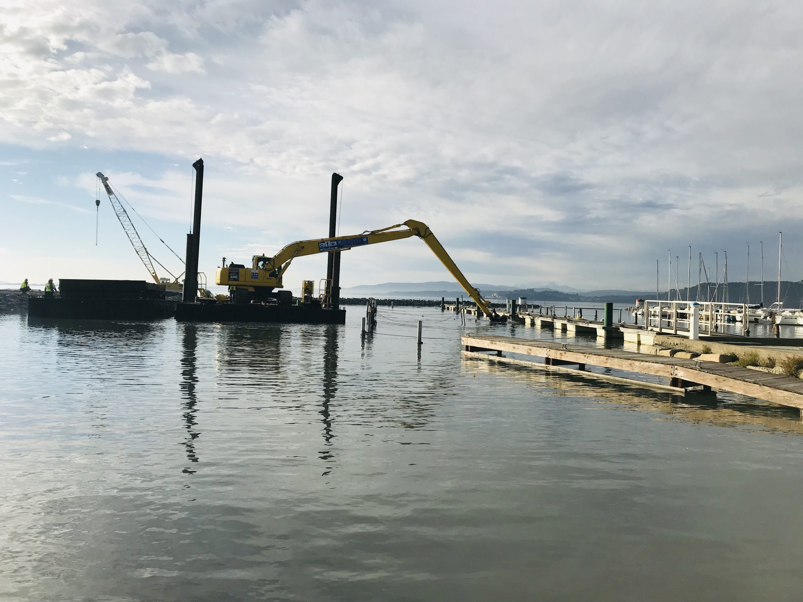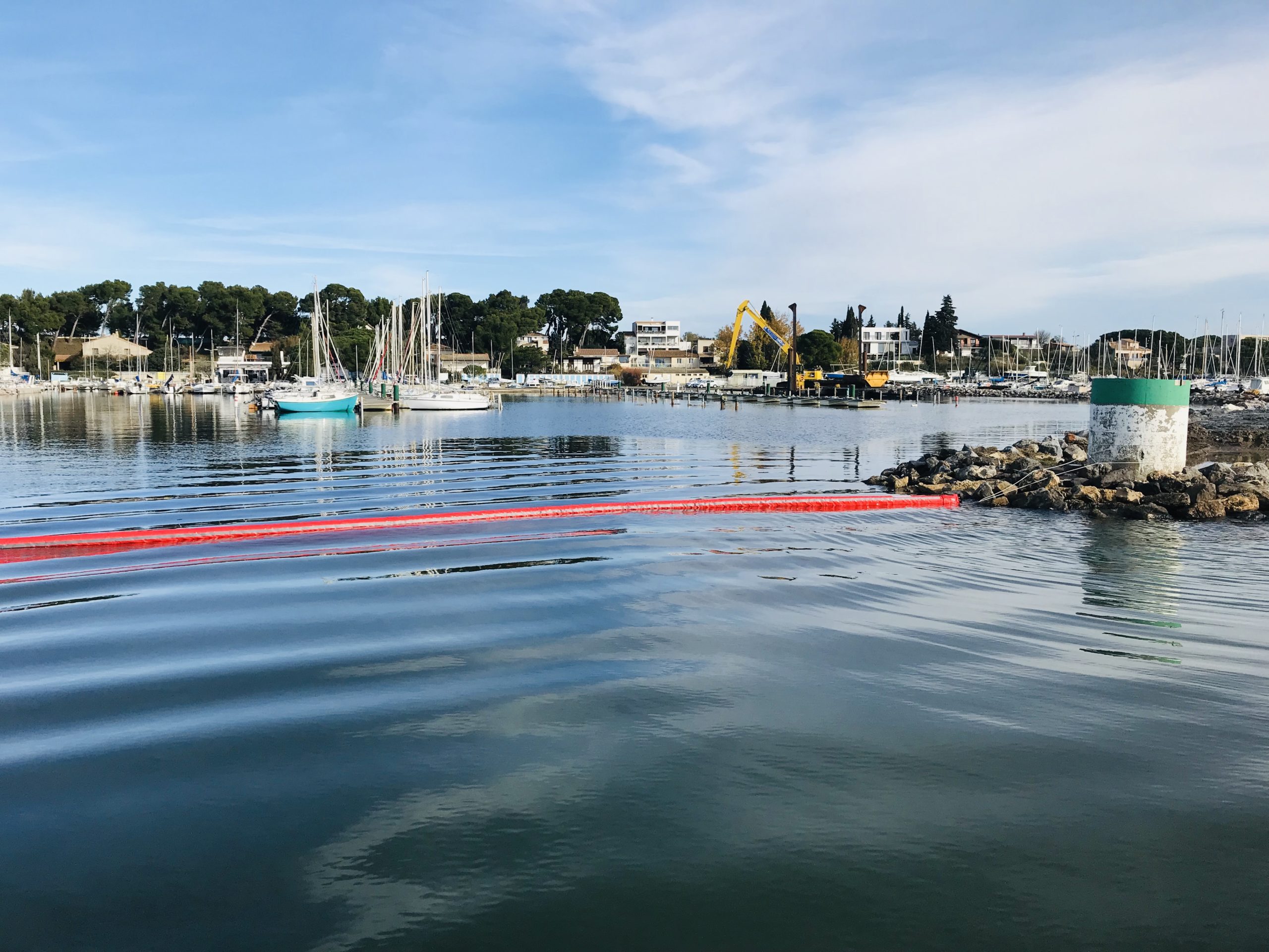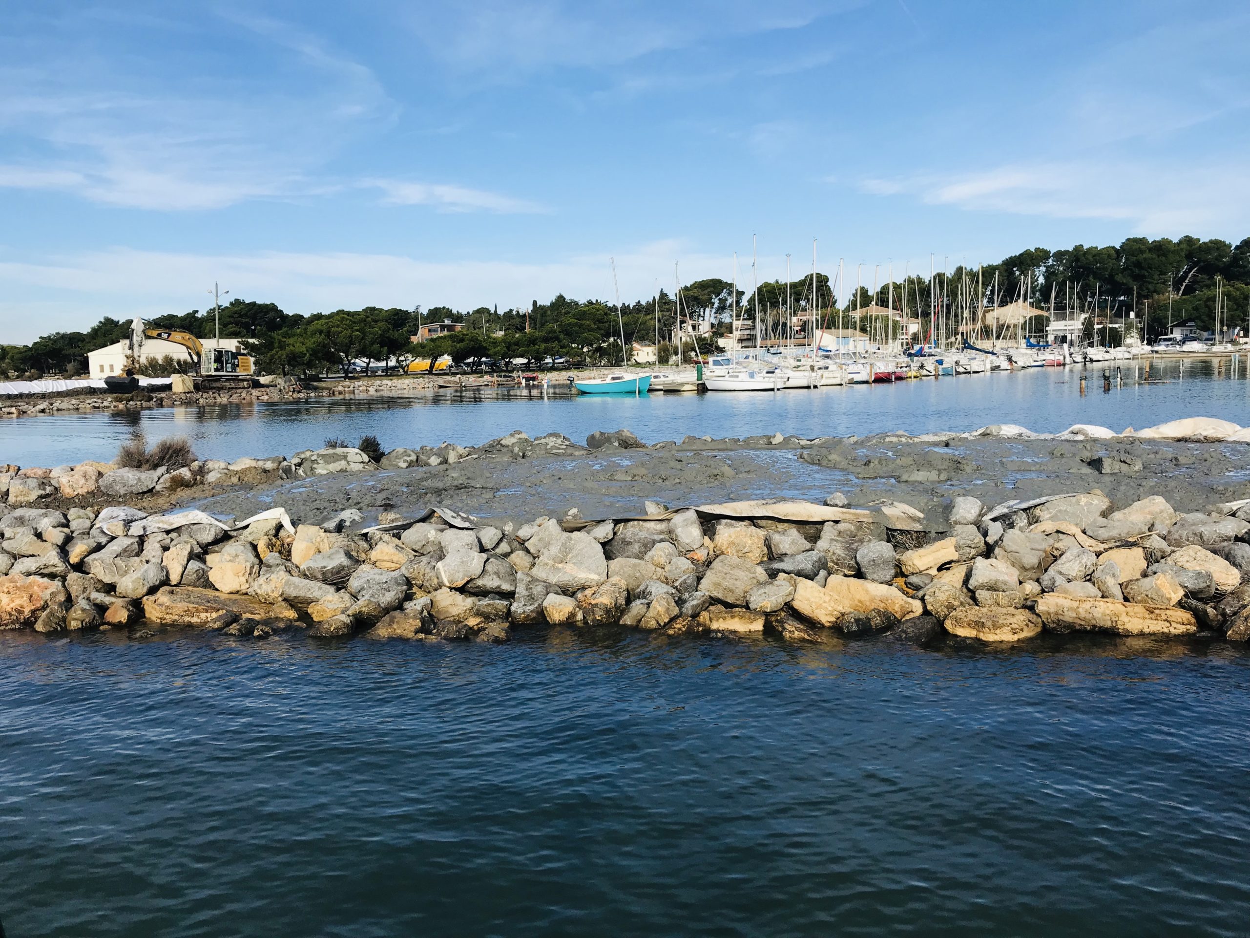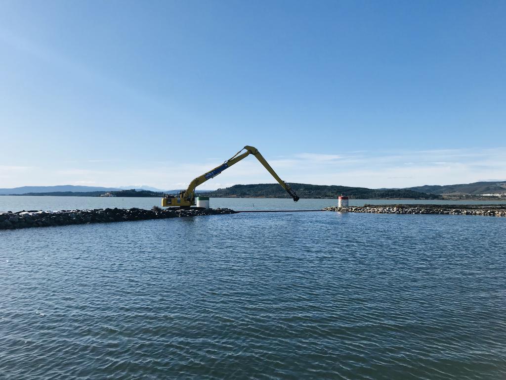 Après la mise en place du chantier, le déménagement des bateaux du ponton B, le barrage de la passe et la pose du géotextile dans les bassins de ressuyage qui ont été rehaussés d’environ 80cm pour optimiser le volume de stockage, les travaux ont démarré ce lundi 25 novembre et ce pour une durée comprise entre le 25 novembre et le 13 décembre 2019.