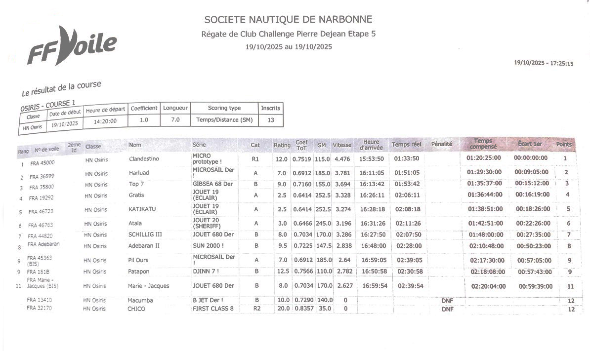 Dimanche 7 septembre 2025 a eu lieu la régate habitables de club “challenge Pierre DEJEAN”.